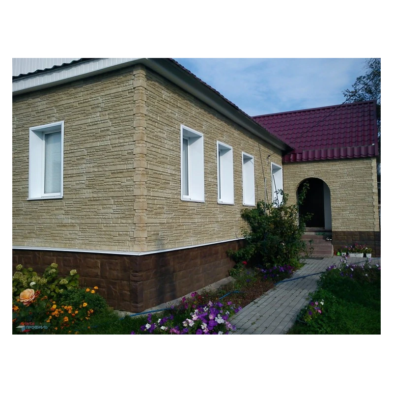 Фасадная панель под гранит с красивой слоистой структурой из набора пластин коллекции Гранит от Альта-Профиль. Благодаря своему массивному дизайну, придаст облику вашего дома объемность и величественность.