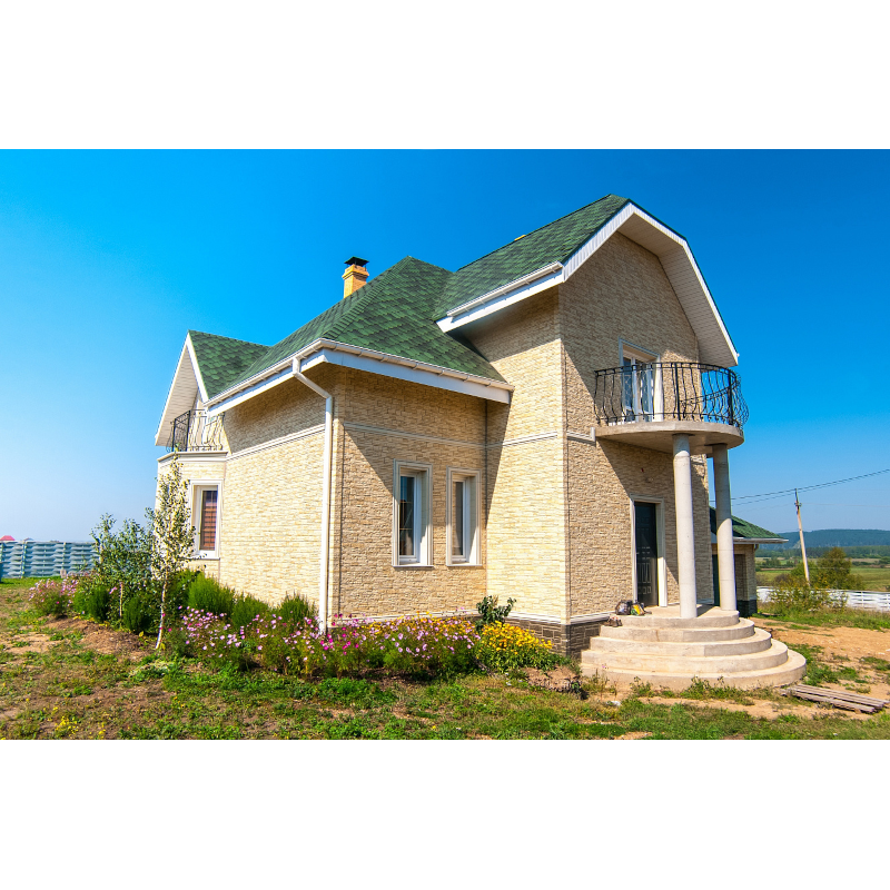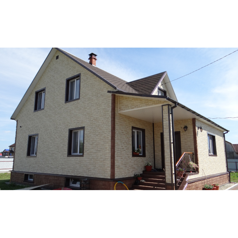 Фасадные панели могут использоваться как для оформления фасада целиком, так и для облицовки фундамента, выделения отдельных деталей.