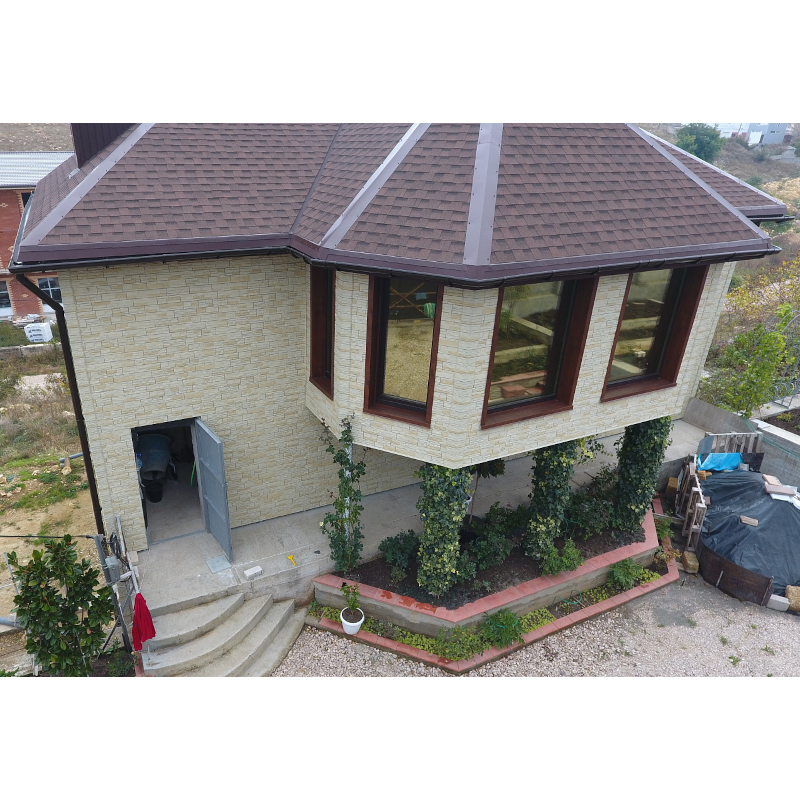 Фасадная панель с текстурой слоистого песчаника и имитацией натуральной каменной кладки из коллекции STEIN от Деке. Панель изготовлена из полипропилена методом литья под давлением, имеет небольшой вес, поэтому не создает дополнительной нагрузки на несущие конструкции. За счет специальной трехступенчатой системы окраски, материал невосприимчив к УФ-лучам и атмосферным осадкам. Конструкция панели усилена ребрами жесткости, что обеспечивает повышенную устойчивость к механическим нагрузкам. Панели легко и надежно скрепляются между собой, монтируются на обрешетку. Монтаж можно производить в любое время года, за исключением сильных морозов (не ниже -15°С)