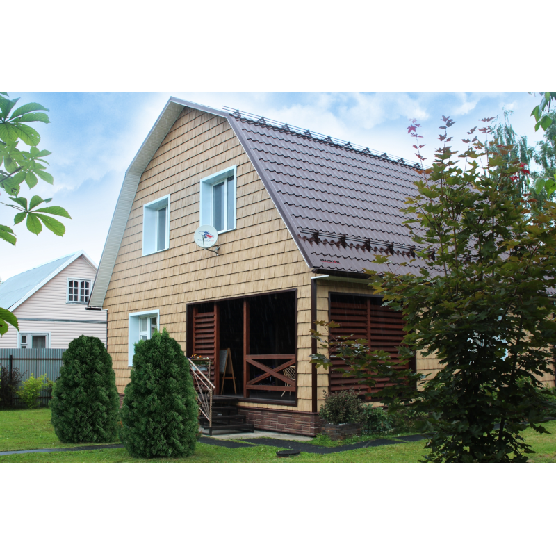 Фасадная панель Я-Фасад Сибирская дранка Песок — оптимальное сочетание надежности и эстетичного вида. Материал точно имитирует вид натурального дерева: дом будет выглядеть респектабельно, при этом отделка не вызовет сложностей и прослужит долго без особых усилий с вашей стороны.