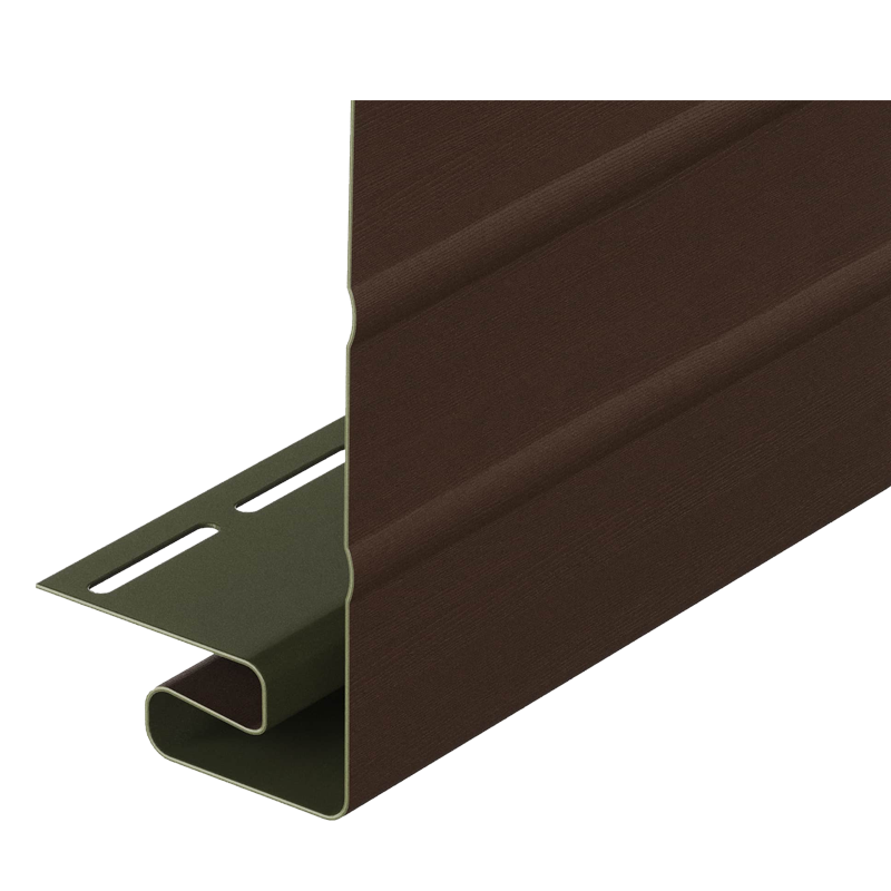 Универсальная виниловая J-фаска от Docke длиной 3 м, цвет Каштан. Используется для отделки фронтонных, лобовых и карнизных досок.