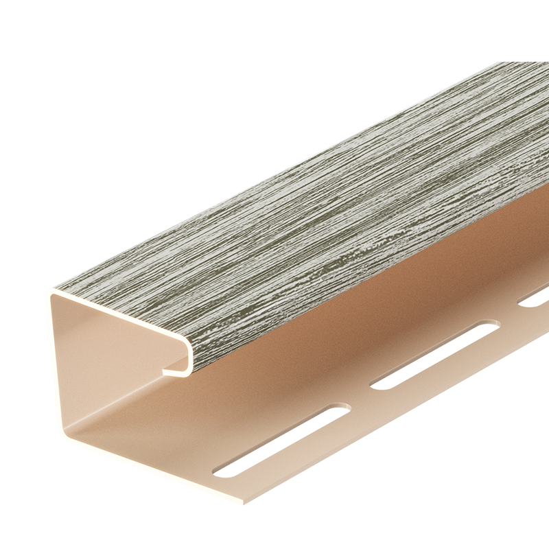 Виниловый J-профиль под дерево серии LUX от Docke длиной 3 м, цвет Канадская береза. Используется для оформления мест стыков крыши и фронтона, при отделке оконных и дверных проемов, в качестве приемного профиля для софитов, а также как декоративный и защитный угловой элемент.