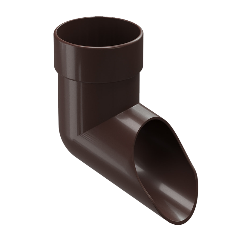 Колено сливное D100 мм цвета Шоколад серии LUX от производителя Docke. Завершающий элемент водостока, устанавливается на концах водосточных труб и служит для отвода воды от фасада строения на землю или в ливневую канализацию.