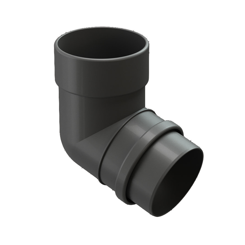 Колено трубы 72° D100 мм цвета Графит серии LUX от производителя Docke. Элемент водосточной системы, соединяет воронку с водосточной трубой и применяется для огибания карнизного вылета крыши, а также позволяет соединять трубы под углом, если нужно обойти архитектурный элемент на фасаде.