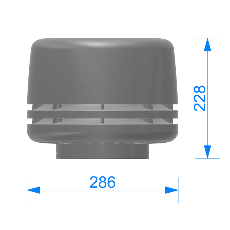Колпак для вентвыхода канализации Ø110 мм. Устанавливается на трубу канализационного выхода, имеет декоративную функцию, сохраняя единообразный вид вентвыходов на одной кровле. Так как из фановой трубы поступает влажный теплый воздух, в условиях холодного климата это может привести к обледеневанию вентвыхода и прекращению вентиляции, поэтому в данном случае колпак используется без внутреннего наполнения. Температурный режим эксплуатации -40°…+80°C. Изготовлен из стойкого к УФ-излучению полипропилена. Крепеж в цвет изделия в комплекте.