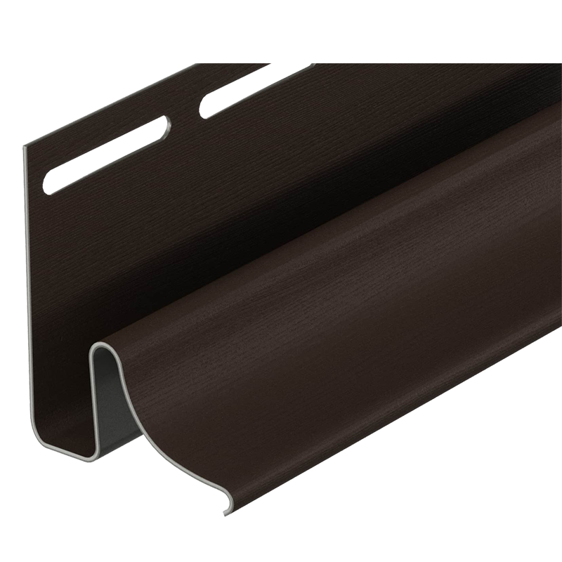 Виниловый универсальный молдинг от Docke длиной 3 м, цвет Шоколад. Сочетает финишный профиль и J-профиль, что позволяет использовать его для закрепления вертикальной облицовки и перехода к софитам.