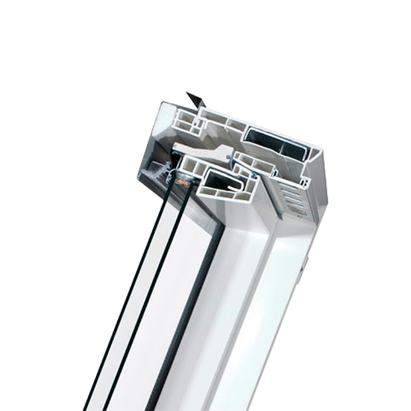 В верхней части оконной рамы установлен вентклапан V35, который позволяет оптимизировать приток свежего воздуха в помещение. Поток воздуха регулируется вручную. За счет лабиринтообразного строения клапана перемешивание холодного воздуха, поступающего с улицы, с теплым воздухом происходит внутри вентклапана, что предотвращает образование конденсата на внутренней стороне стеклопакета.
