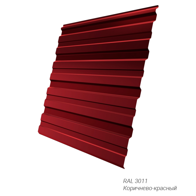 Профнастил имеет профиль C10R (высотой 10 мм). Толщина стали составляет 0,5 мм. Колеровка — заказная. Можно подобрать идеальный цвет для любого проекта.