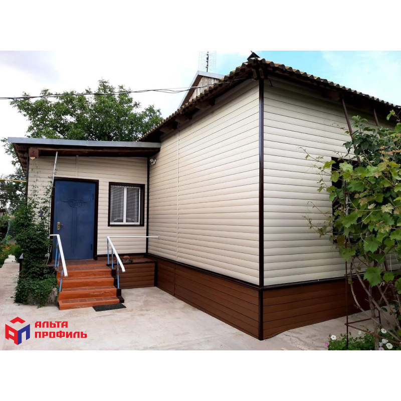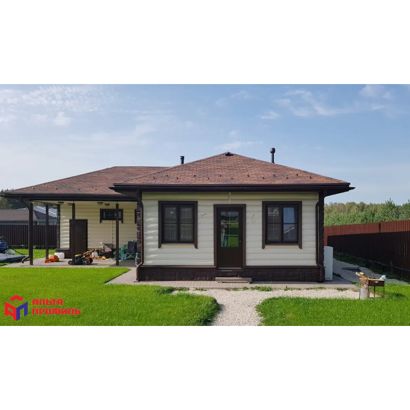 Виниловая панель однопереломного сайдинга длиной 3,1 м (3100 мм) из коллекции Блокхаус Престиж от Альта-Профиль. Сайдинг объемной формы, имитирующий оцилиндрованное бревно, дополнен тиснением под натуральное дерево, Панель из винила под бревно отличное решение для любителей традиционного стиля, она ничуть не уступает в красоте натуральной древесине, в то же время, данный материал намного дешевле и не требует дополнительного ухода. Блок-хаус ВН-01 за счет своей формы и ширины выглядит более массивным, фасад с ним смотрится дорого и солидно. Виниловый блок-хаус морозоустойчив и сохраняет ударопрочность при температуре до -60°С, поэтому он идеально подходит для северных регионов страны. Купить сайдинг Блокхаус Престиж ВН-01 Бежевый от Альта-Профиль по приятной цене вы можете в нашем интернет-магазине Удачная покупка.