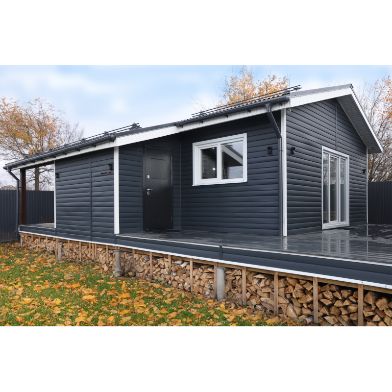 Вид профиля по декоративным характеристикам — Блокхаус. Цвет Графит — защищен от выцветания.