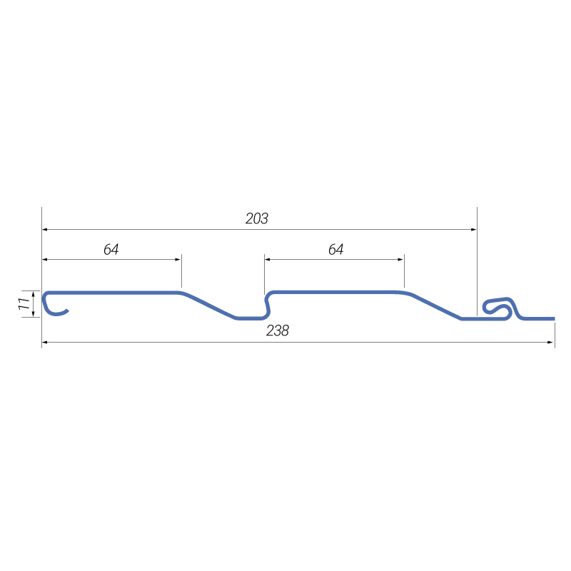 Длина изделия составляет 3000 мм. Высота — 203 мм. Вид профиля — Корабельный брус: прост в монтаже, не нагружает конструкцию здания.