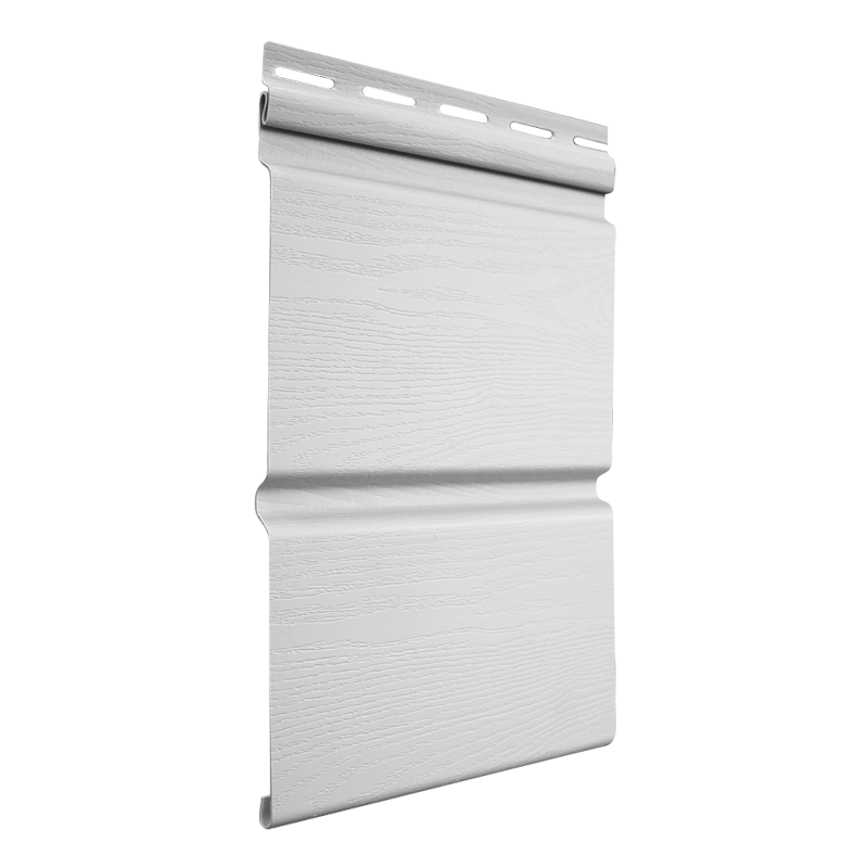 Белый сайдинг Double-брус (коллекция Classic винил) выглядит как фасад из деревянного клееного бруса благодаря улучшенной формуле окрашивания и точно переданной текстуре древесины. Новинка 2024 от Гранд Лайн, панель увеличенной ширины (полная ширина 324 мм, рабочая 291 мм) может монтироваться как горизонтально, так и вертикально. Все панели серии Double-брус монтируются с использованием стандартных аксессуаров к сайдингу Grand Line из виниловой или акриловой коллекции.