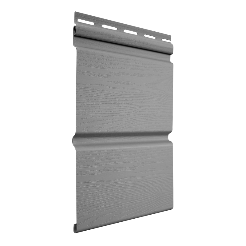Серый сайдинг Double-брус — современное и вместе с тем классическое решение фасада в скандинавском стиле. Форма панели достоверно имитирует клееный брус, текстура натурального дерева подчеркивает это сходство. Панели Double-брус коллекции Classic винил можно сочетать между собой (Серый и Белый цвета), возможность традиционного горизонтального и вертикального бесшовного монтажа позволяет реализовать дизайнерские решения без лишних затрат. К тому же сайдинг Double-брус имеет увеличенную ширину панели (полная 324 мм, рабочая 291 мм). Аксессуары для обшивки сайдингом можно подобрать из стандартных решений от Grand Line: для разного типа акцентов на фасаде подойдут белые аксессуары коллекции Classic или аксессуары в цвете Графит Premium Acryl.