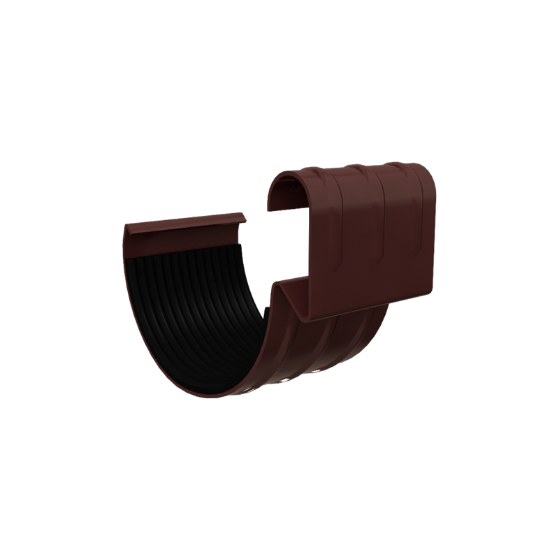 Соединитель желоба с резиновой прокладкой D125 мм коричневый RAL8017 серии Гранд Систем от Металл Профиль. Устанавливается в местах соединения водосточных желобов, используется для герметизации стыков и придает дополнительную прочность водостоку. Металлический водосток круглого сечения с двусторонним глянцевым покрытием Полиэстер серии Гранд Систем (GrandSystem) от Металл Профиль. ОСОБЕННОСТИ: – Основа из оцинкованной стали толщиной 0,5 мм обеспечивает высокую прочность – Многоуровневая защита стали от ржавчины и коррозии: грунт, цинк, пассивирующий слой, двухстороннее высокопрочное глянцевое покрытие Полиэстер толщиной 35 мкм – Обладает хорошей стойкостью цвета, не выгорает – Устойчивый к статическим и ударным нагрузкам (наледь, мусор, падающие ветки, плоды) – Высокая стойкость к температурным перепадам (водосток не трескается в мороз и не деформируется в жару) – Круглое сечение (обладает наименьшим сопротивлением потоку воды) – Размерность системы D125/90 отличается хорошей пропускной способностью и успешно справляется с нагрузками – Легкость монтажа (надежная и герметичная стыковка элементов водостока без использования заклепок) – Универсальные цветовые решения — белый и коричневый (гармонируют с любым оттенком фасада и кровли) – Срок службы до 50 лет. Водосточная система Гранд Систем D125/90 — оптимальный вариант для устройства водоотвода с крыши загородного дома. Подходит для скатов кровель площадью не более 100 м². Водосток служит для защиты фасада и фундамента строения от осадков. Обеспечивает отвод воды, предотвращая разрушение фундамента, подтопление подвалов. Продлевает срок службы фасадных материалов. А также является средством сбора дождевой воды для последующего ее использования. Купить соединитель желоба D125 мм коричневый RAL8017 для водостока Гранд Систем от производителя Металл Профиль по низкой цене вы можете в нашем интернет-магазине Удачная покупка. Наши менеджеры помогут с выбором и рассчитают необходимое количество элементов водостока.