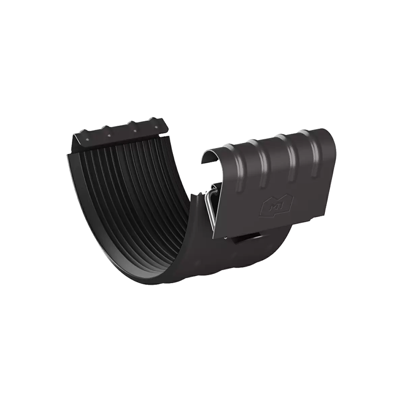 Соединитель желоба D150 мм коричневый RR32 с покрытием Пластизол серии МП Престиж от Металл Профиль. Устанавливается в местах соединения водосточных желобов, используется для герметизации стыков и придает дополнительную прочность водостоку.