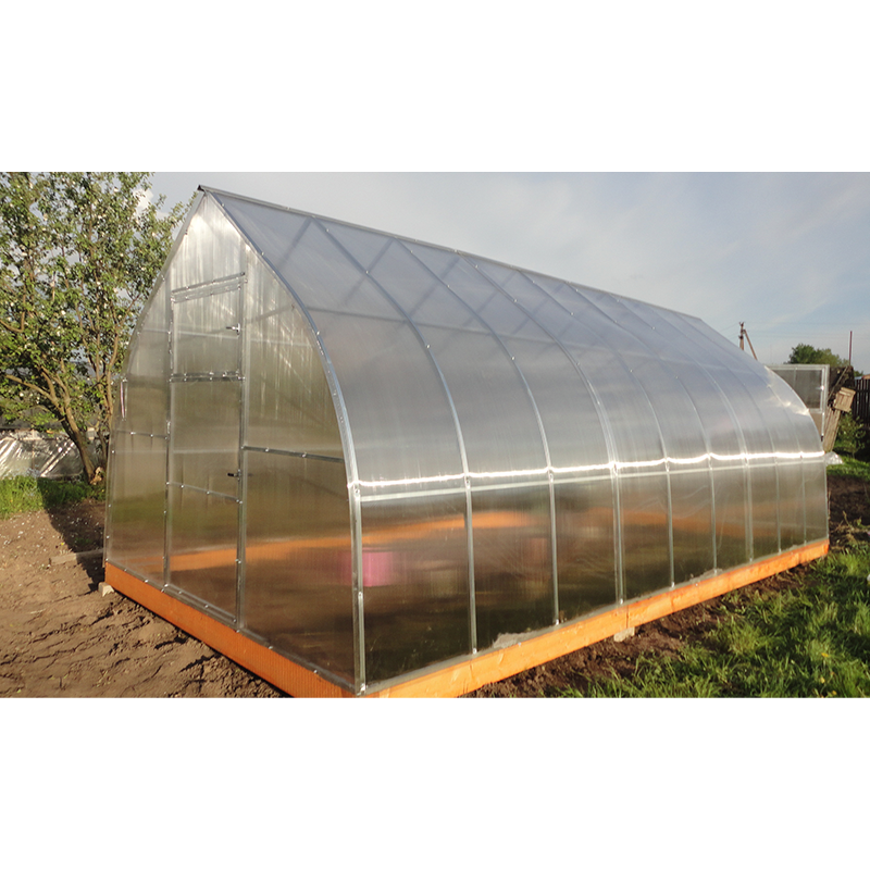 Теплица "Купольная" предназначена для эксплуатации в северных районах, где ежегодно выпадает большое количество осадков. Отличительная особенность: куполообразный тип каркаса. Он предотвращает скапливание большой снежной шапки, а также делает все сооружение более устойчивым к значительным снеговым нагрузкам. Еще одно преимущество этой теплицы это наличие 7 продольных стяжек, что делает ее очень жесткой и надежной.