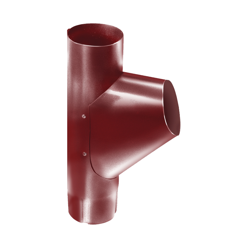 Тройник трубы D90 мм коричнево-красный RAL3011 с покрытием Granite Double от Гранд Лайн. Применяется для соединения двух водосточных труб в один общий сток.