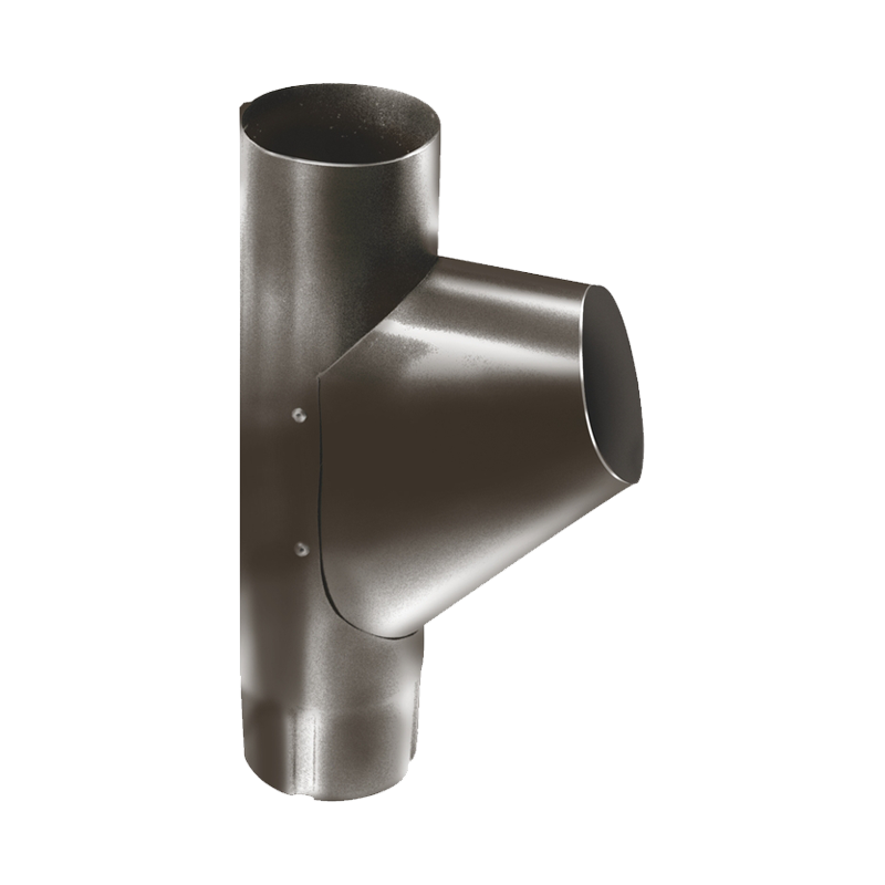 Тройник трубы D90 мм коричневый RR32 с покрытием Granite Double от Гранд Лайн. Применяется для соединения двух водосточных труб в один общий сток.