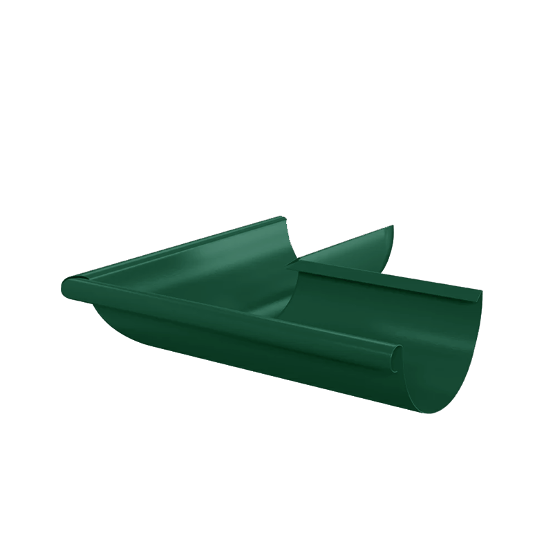 Угол желоба наружный D150 мм 90° зеленый RAL6005 с покрытием Пластизол серии МП Престиж от Металл Профиль. Предназначен для соединения водосточных желобов под углом 90 градусов, для смены направления движения воды в стоке. Обеспечивает непрерывность линии водостока. Устанавливается на наружных/выступающих углах здания. Металлический водосток круглого сечения с двухсторонним покрытием Пластизол (PVC) серии МП Престиж от Металл Профиль. ОСОБЕННОСТИ: – Элементы водостока изготовлены из оцинкованной стали толщиной от 0,5 мм, что обеспечивает высокую жесткость водосточной системы – Выдерживает значительные нагрузки (лёд, снег, мелкие животные) – Многоуровневая защита стали от ржавчины и коррозии: грунт, цинк, пассивирующий слой, двухстороннее гладкое глянцевое покрытие Пластизол (PVC) толщиной 100 мкм – Стойкость к большим температурным перепадам (водосток не трескается в мороз и не деформируется в жару) – Стойкость к химическим веществам – Круглое сечение (обладает наименьшим сопротивлением потоку воды) – Размерность системы D150/100 отличается хорошей пропускной способностью и успешно справляется с нагрузками – Высокая прочность комплектующих элементов и крепежа – Широкая палитра цветов – Срок службы до 50 лет. Водосточная система МП Престиж D150/100 подходит для устройства водоотвода с кровель больших площадей. Водосток служит для защиты фасада и фундамента строения от осадков. Обеспечивает отвод воды, предотвращая разрушение фундамента, подтопление подвалов. Продлевает срок службы фасадных материалов. А также является средством сбора дождевой воды для последующего ее использования. Купить угол желоба наружный D150 мм 90° зеленый RAL6005 с покрытием Пластизол от производителя Металл Профиль по доступной цене вы можете в нашем интернет-магазине Удачная покупка. Наши менеджеры помогут с выбором и рассчитают необходимое количество элементов водостока.