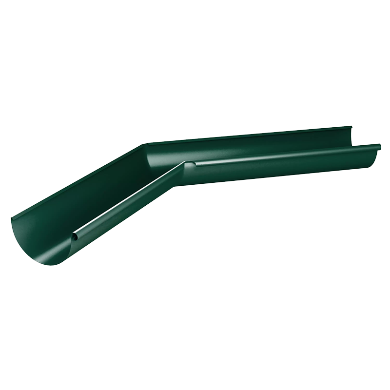 Угол желоба внутренний D150 мм 135° зеленый RAL6005 с покрытием Пластизол серии МП Престиж от Металл Профиль. Предназначен для соединения водосточных желобов под углом 135 градусов, для смены направления движения воды в стоке. Обеспечивает непрерывность линии водостока. Устанавливается на внутренних углах здания. Металлический водосток круглого сечения с двухсторонним покрытием Пластизол (PVC) серии МП Престиж от Металл Профиль. ОСОБЕННОСТИ: – Элементы водостока изготовлены из оцинкованной стали толщиной от 0,5 мм, что обеспечивает высокую жесткость водосточной системы – Выдерживает значительные нагрузки (лёд, снег, мелкие животные) – Многоуровневая защита стали от ржавчины и коррозии: грунт, цинк, пассивирующий слой, двухстороннее гладкое глянцевое покрытие Пластизол (PVC) толщиной 100 мкм – Стойкость к большим температурным перепадам (водосток не трескается в мороз и не деформируется в жару) – Стойкость к химическим веществам – Круглое сечение (обладает наименьшим сопротивлением потоку воды) – Размерность системы D150/100 отличается хорошей пропускной способностью и успешно справляется с нагрузками – Высокая прочность комплектующих элементов и крепежа – Широкая палитра цветов – Срок службы до 50 лет. Водосточная система МП Престиж D150/100 подходит для устройства водоотвода с кровель больших площадей. Водосток служит для защиты фасада и фундамента строения от осадков. Обеспечивает отвод воды, предотвращая разрушение фундамента, подтопление подвалов. Продлевает срок службы фасадных материалов. А также является средством сбора дождевой воды для последующего ее использования. Купить угол желоба внутренний D150 мм 135° зеленый RAL6005 с покрытием Пластизол от производителя Металл Профиль по доступной цене вы можете в нашем интернет-магазине Удачная покупка. Наши менеджеры помогут с выбором и рассчитают необходимое количество элементов водостока.