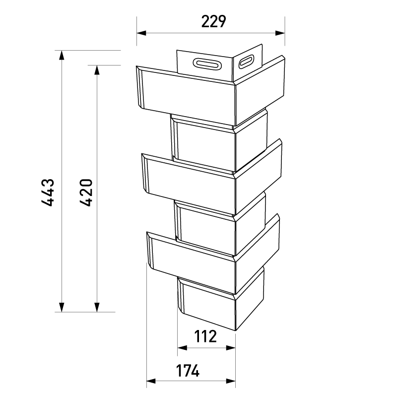 Доборный элемент позволяет красиво оформить и защитить отдельные части фасада, упрощает монтаж панелей и придает отделке завершенный вид, точно воспроизводит вид и фактуру натурального кирпича.