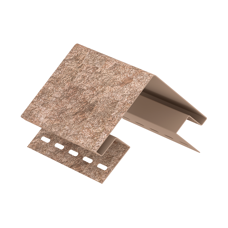 Внешний угол из винила для фасадных панелей Ю-Пласт StoneHouse Сланец Бурый длиной 3050 мм. Используется для декоративного оформления и защиты наружных углов фасада. Скрывает и укрепляет места угловых стыков фасадных панелей.