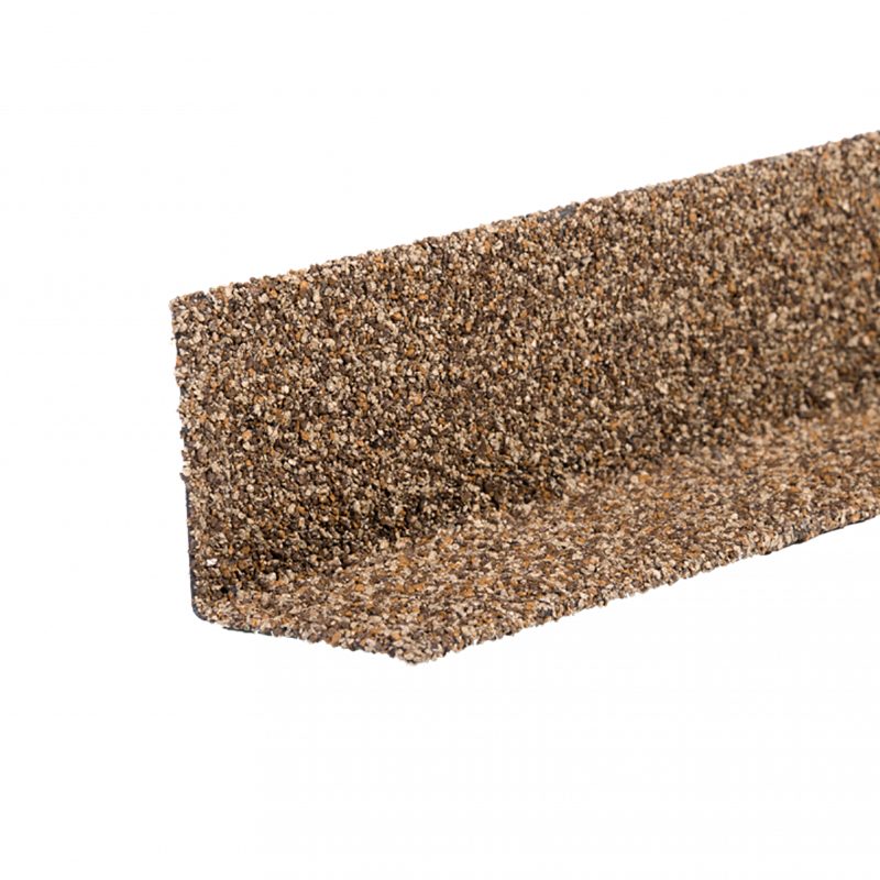Внутренний угол для фасадной плитки HAUBERK Кирпич Песчаный длиной 1250 мм. Предназначен для декоративного оформления и защиты внутренних углов фасада. Произведен из высококачественного стального листа толщиной 0,45 мм, покрытого с обеих сторон алюмоцинковым слоем плотностью 150 г/м². Декоративный слой состоит из нескольких оттенков натуральных базальтовых гранул, защищенных УФ-стойким акриловым лаком. Устойчив к механическим воздействиям и коррозии, обладает высокой цветостойкостью.