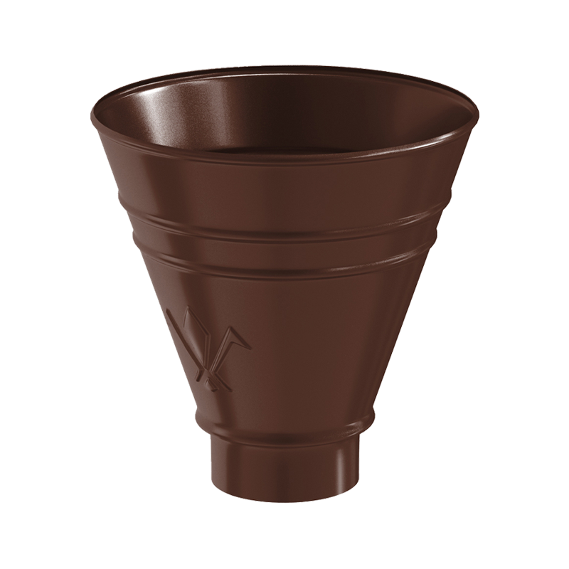 Воронка водосборная D90 мм RAL8017 Коричневая с покрытием Полиуретан (PUR) от производителя Аквасистем. Элемент водосточной системы, применяется для сбора воды со сложных форм крыш, фальцевых кровель, в тех случаях, когда сток не организован посредством желоба.
