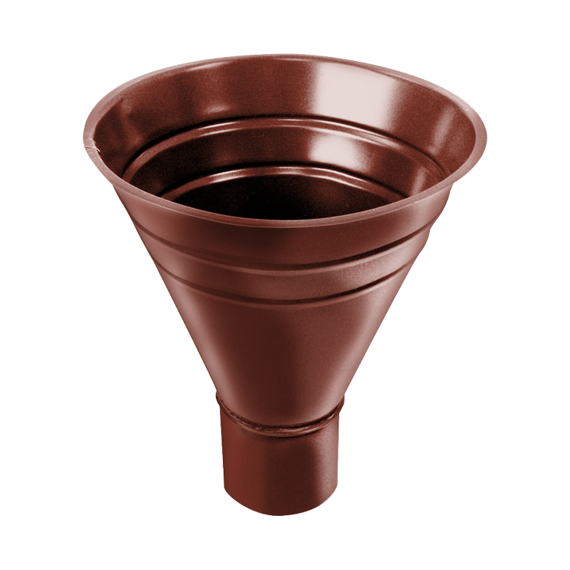 Воронка водосборная D125/90 мм терракотовая RAL8004 с покрытием Granite Double от Гранд Лайн. Элемент водосточной системы, применяется для сбора воды со сложных форм крыш, фальцевых кровель, в тех случаях, когда сток не организован посредством желоба.