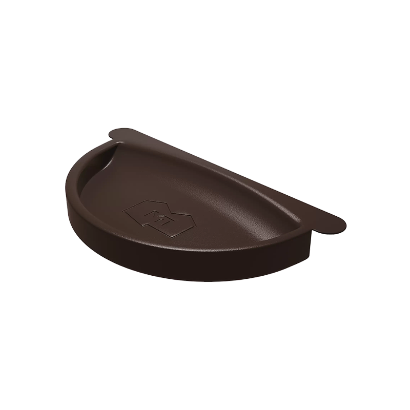 Заглушка желоба D150 мм коричневая RAL8017 с покрытием Пластизол серии МП Престиж от Металл Профиль. Предназначена для закрытия торцов водосточных желобов.