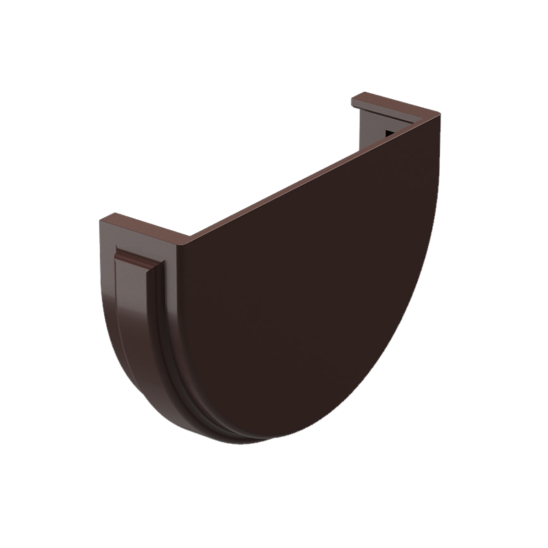 Заглушка желоба универсальная D120 мм цвета Шоколад серии PREMIUM от производителя Docke. Устанавливается на концах водосточных желобов для обеспечения герметичности. Заглушка универсальна, её можно крепить к желобу как справа, так и слева.