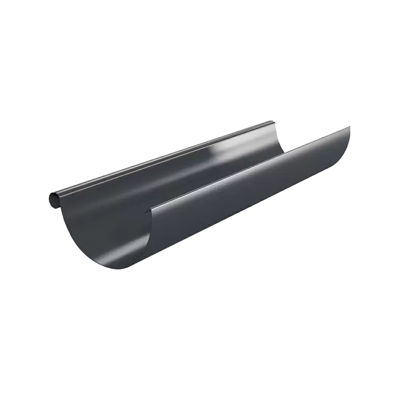 Желоб водосточный D150 мм длиной 3 м темно-серый RAL7024 с покрытием Пластизол серии МП Престиж от Металл Профиль. Является основным элементом водосточной системы, крепиться под скат кровли. Собирает и направляет дождевую воду с крыши строения в водосточную трубу. Металлический водосток круглого сечения с двухсторонним покрытием Пластизол (PVC) серии МП Престиж от Металл Профиль. ОСОБЕННОСТИ: – Элементы водостока изготовлены из оцинкованной стали толщиной от 0,5 мм, что обеспечивает высокую жесткость водосточной системы – Выдерживает значительные нагрузки (лёд, снег, мелкие животные) – Многоуровневая защита стали от ржавчины и коррозии: грунт, цинк, пассивирующий слой, двухстороннее гладкое глянцевое покрытие Пластизол (PVC) толщиной 100 мкм – Стойкость к большим температурным перепадам (водосток не трескается в мороз и не деформируется в жару) – Стойкость к химическим веществам – Круглое сечение (обладает наименьшим сопротивлением потоку воды) – Размерность системы D150/100 отличается хорошей пропускной способностью и успешно справляется с нагрузками – Высокая прочность комплектующих элементов и крепежа – Широкая палитра цветов – Срок службы до 50 лет. Водосточная система МП Престиж D150/100 подходит для устройства водоотвода с кровель больших площадей. Водосток служит для защиты фасада и фундамента строения от осадков. Обеспечивает отвод воды, предотвращая разрушение фундамента, подтопление подвалов. Продлевает срок службы фасадных материалов. А также является средством сбора дождевой воды для последующего ее использования. Купить желоб водосточный D150 мм темно-серый RAL7024 с покрытием Пластизол от производителя Металл Профиль по доступной цене вы можете в нашем интернет-магазине Удачная покупка. Наши менеджеры помогут с выбором и рассчитают необходимое количество элементов водостока.